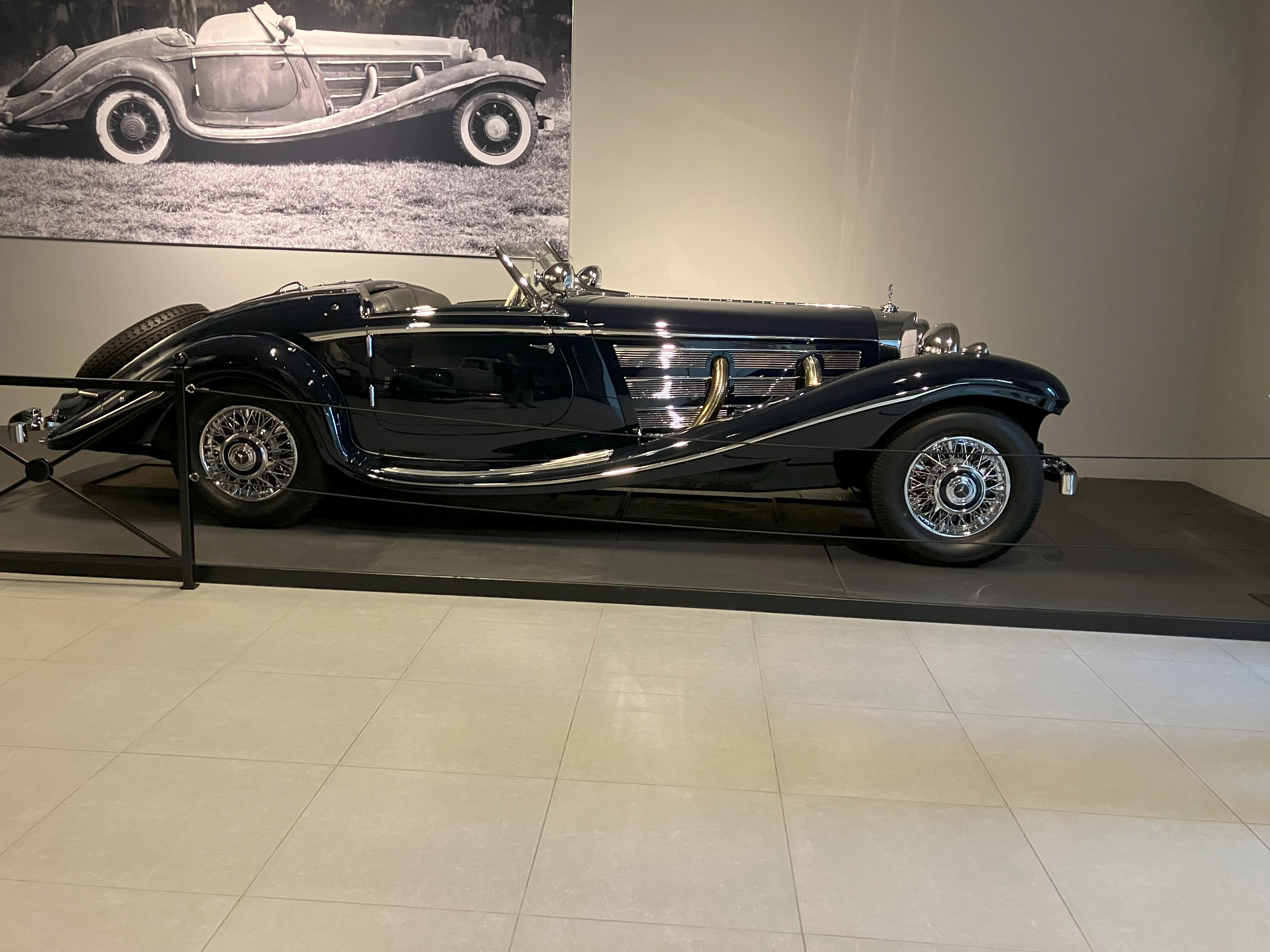 In the collection there is something for everyone from each decade with Cars from 1886 – Baker Electric Vehicles from the early 1900’s – all makes not just Mercedes-Benz. Sir Winston Churchill’s Humber and General Montgomery’s motorcycle, American Cars through the decades Elvis Presley’s customized Cadillac, The Lincoln used the film the Godfather and one of the 3 original Aston Martin DB 6’s altered at the factory for the James Bond Films, even Formula 1 Racing cars and notably also Kaiser Wilhelm II Mercedes-Benz from 1933, a 1935 Duesenberg SJ Lagrande with other Duesenberg’s making their presence felt.